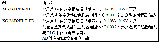 XC系列PLC適配左擴(kuò)展BD板,包含2點(diǎn)AD輸入、2點(diǎn)PT100輸入。