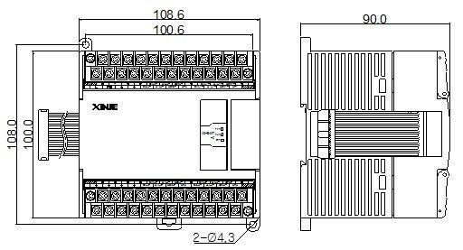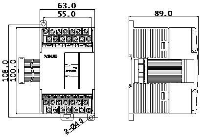 I/O點(diǎn)數(shù)為8~16點(diǎn)的外觀尺寸圖如下: